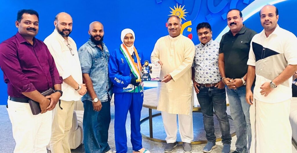 മനാമ : ബഹ്റൈനിൽ നടന്ന മൂന്നാമത് ഏഷ്യൻ യൂത്ത് ഗെയിംസിൽ ഇന്ത്യയെ പ്രതിനിധീകരിച്ച് മലപ്പുറത്തിൻ്റെ അഭിമാനമായി തായ് ആയോധന കലയായ മൊയ്തായ് ഫുൾ കോൺടാക്ട് ഫൈറ്റ് ഇനത്തിൽ മത്സരിച്ച ഏക മലയാളികൂടിയായ പെൺകരുത്ത് നിഷാദ് അൻജൂമിനെ ബഹ്റൈൻ മലപ്പുറം ഡിസ്ട്രിക്ട് ഫോറം ഭാരവാഹികൾ ആദരിച്ചു. ബി.എം.ഡി. എഫ് രക്ഷാധികാരി ബഷീർ അമ്പലായി മൊമെൻ്റോ നൽകി ആദരിച്ച ചടങ്ങിൽ ആക്ട്ടിംഗ് പ്രസിഡൻറ് റംഷാദ്, ജനറൽ സെക്രട്ടറി ഷമീർ പൊട്ടച്ചോല, വൈസ് പ്രസിഡൻറ് സക്കരിയ , ഓർഗനൈസിങ് സെക്രട്ടറി മൻഷീർ കൊണ്ടോട്ടി, ജോ:സെക്രട്ടറി കാസിം പാടത്തകായിൽ, വൈസ് പ്രസിഡൻറ് മുനീർ വളാഞ്ചേരി തുടങ്ങിയവർ സംബന്ധിച്ചു.