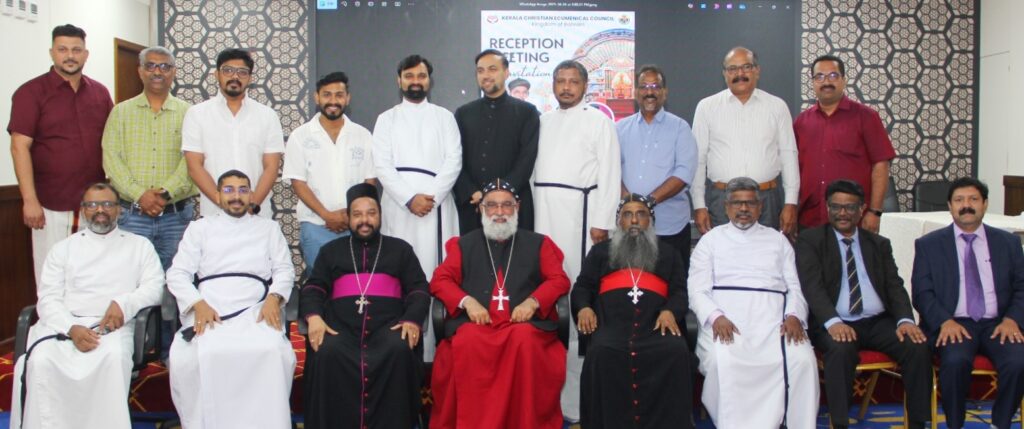 മനാമ: മലങ്കര യാക്കോബായ സുറിയാനി സഭയുടെ ശ്രേഷ്ഠ കാതോലിക്ക ആബൂൻ മോർ ബസ്സേലിയോസ്‌ ജോസഫ് കാതോലിക്ക ബാവയിക്കും പാത്രിയാർക്കൽ വികാരി അഭിവന്ദ്യ മാത്യൂസ് മോർ തേവദോസിയോസ് മെത്രാപോലീത്തായിക്കും ബഹ്റൈനിലെ കേരള ക്രിസ്ത്യൻ എക്യുമെനിക്കൽ കൗൺസിൽ സ്വീകരണം നൽകി. കെ.സി.ഇ.സി.യുടെ പ്രസിഡൻറ് റവ. അനീഷ് സാമുവേൽ ജോൺൻ്റെ അധ്യക്ഷതയിൽ കൂടിയ സ്വീകരണ യോഗത്തിന് ജനറൽ സെക്രട്ടറി ജോമോൻ മലയിൽ ജോർജ് സ്വാഗതം അറിയിച്ചു.വൈസ് പ്രസിഡന്റിന്മാരായ റവ. മാത്യൂസ് ഡേവിഡ്, വെരി.റവ. ഫാ. സ്ലീബ പോൾ കോർ എപ്പിസ്കോപ്പ, റവ.ബിജു ജോൺ, റവ. സാമുവേൽ വർഗ്ഗീസ്, റവ. അനുപ് സാം, റവ. ജേക്കബ് കല്ലുവിളയില്‍, ജെയിംസ് ജോൺ എന്നിവര്‍ ആശംസകളറിയിച്ചു. എക്സിക്യൂട്ടീവ് കമ്മറ്റി അംഗങ്ങളായ എബിൻ മാത്യു ഉമ്മൻ, എബ്രഹാം ജോൺ, സാബു പൗലോസ്, ഡിജു ജോൺ മാവേലിക്കര എന്നിവരും ബഹ്റൈന്‍ സെൻ്റ് പീറ്റേഴ്സ് ജാക്കോബൈറ്റ് സിറിയൻ ഓർത്തഡോക്സ് ദേവാലയ ഭാരവാഹികളും പങ്കെടുത്ത യോഗത്തിന് ട്രഷറർ ജെറിന്‍ രാജ് സാം നന്ദി അറിയിച്ചു.