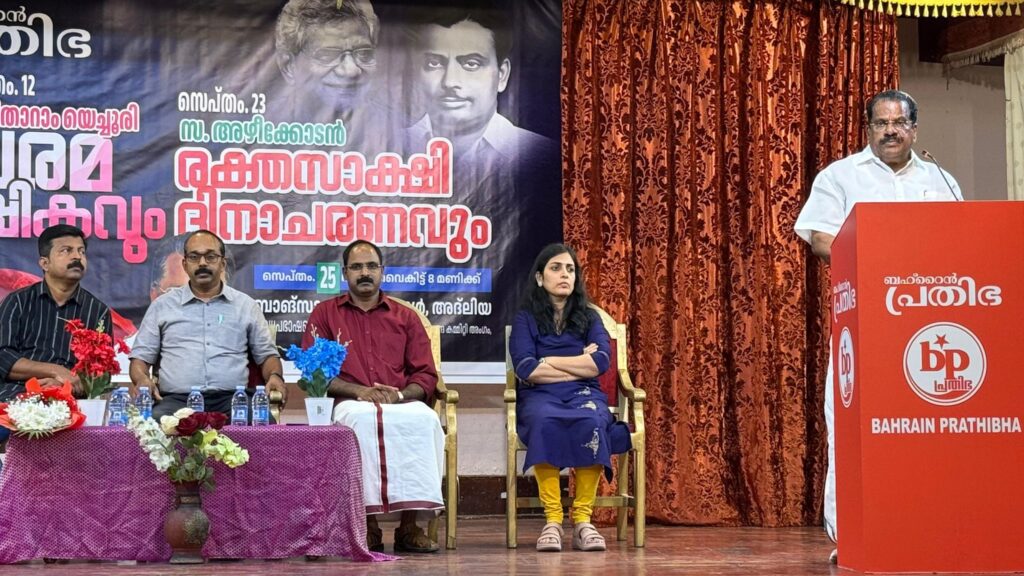 മനാമ : അടിസ്ഥാന പശ്ചാത്തല സൗകര്യ വികസനത്തിന്റെ കാര്യത്തിലും, സാമൂഹ്യ മുന്നേറ്റത്തിന്റെ കാര്യത്തിലും കേരളം അതിവേഗം കുതിച്ചു കൊണ്ടിരിക്കുകയാണെന്ന് സിപിഐഎം കേന്ദ്ര കമ്മറ്റി അംഗം ഇ പി ജയരാജൻ . ബഹ്റൈൻ പ്രതിഭ സംഘടിപ്പിച്ച സീതാറാം യെച്ചൂരി – അഴീക്കോടൻ രാഘവൻ അനുസ്മരണ പരിപാടിയിൽ മുഖ്യ പ്രഭാഷണം നടത്തി സംസാരിക്കുകയായിരുന്നു അദ്ദേഹം.കഴിഞ്ഞ ഒരു ദശകത്തിനിടെ വലിയ മാറ്റങ്ങളാണ് കേരളത്തിൽ പിണറായി സർക്കാർ കൊണ്ടുവന്നത്. നാടിന്റെ സമസ്തമേഖലകളെയും സ്പർശിച്ച സമഗ്രമായ മാറ്റങ്ങളാണ് കൊണ്ട് വന്നത്. ആരോഗ്യ, വിദ്യാഭ്യാസ , പശ്ചാത്തല വികസന, സാമൂഹിക രംഗങ്ങളിൽ എല്ലാം ആ മാറ്റം പ്രകടമാണ്.നവംബർ ഒന്നോടു കൂടെ അതിദരിദ്രർ ഇല്ലാത്ത ഒരു നാടായി കേരളം പ്രഖ്യാപിക്കപ്പെടാൻ പോവുകയാണ്. ശബരിമലയെ ലോകത്തിലെ തന്നെ ശ്രദ്ധേയമായ തീർത്ഥാടന കേന്ദ്രമാക്കി മാറ്റാനുള്ള പദ്ധതികൾ സർക്കാർ ആവിഷ്ക്കരിച്ചിട്ടുണ്ട്. അറുപത്തിയഞ്ച് ലക്ഷം വയോധികർക്ക് പെൻഷൻ നൽകി വരുന്നു. ലക്ഷക്കണക്കിന് ഭാവന രഹിതർക്ക് വീടും , ലക്ഷക്കണക്കിന് മനുഷ്യർക്ക് പട്ടയം നൽകി അവരെ ഭൂമിയുടെ ഉടമകളാക്കിയും മാറ്റി.ലക്ഷക്കണക്കിന് വരുന്ന പ്രവാസികളെ ചേർത്ത് പിടിക്കുന്നതിലും കേരളം ലോകത്തിന് മാതൃകയാണെന്ന് അദ്ദേഹം ചൂണ്ടിക്കാട്ടി. അതിന്റെ ഏറ്റവും ഒടുവിലെ ഉദാഹരണമാണ് സർക്കാർ നോർക്ക റൂട്സ് വഴി പ്രവാസികൾക്കായി ആരംഭിച്ചിരിക്കുന്ന സമഗ്ര ആരോഗ്യ – അപകട ഇൻഷുറൻസ് പദ്ധതിയായ നോർക്ക കെയർ. പദ്ധതിയിൽ ചേരുന്നവർക്ക് കാത്തിരിപ്പ് കാലാവധി ഇല്ലാ എന്നതും എല്ലാ പ്രായക്കാർക്കും ഒരേ പ്രീമിയം എന്നതും നിലവിലുള്ള രോഗാവസ്ഥയിലും പദ്ധതിയിൽ ചേരാം എന്നതും ഉൾപ്പെടെ ഉള്ള സവിശേഷതകൾ പ്രവാസികൾക്ക് വലിയ പ്രയോജനം ചെയ്യും. മുഴുവൻ പ്രവാസികളും കുടുംബാംഗങ്ങളും നോർക്ക കെയർ ഇൻഷുറൻസ് പദ്ധതിയിയുടെ ഗുണം പ്രയാജനപ്പെടുത്തണം എന്നും അദ്ദേഹം അഭ്യർത്ഥിച്ചു.അമേരിക്കയുടെ പിന്തുണയോടെ ഇസ്രായേൽ പലസ്തീനിൽ നടത്തി വരുന്ന ക്രൂരതക്ക് അറുതിവരുത്താൻ ലോക രാജ്യങ്ങൾ ഒന്നിക്കണം എന്നും അദ്ദേഹം ചൂണ്ടിക്കാട്ടി. ഒപ്പം ഏഷ്യൻ രാജ്യങ്ങൾക്കും അറബ് രാജ്യങ്ങൾക്കും മേൽ ഭീഷണിയായി നിലനിൽക്കുന്ന അമേരിക്കയുടെ സാമ്പത്തിക യുദ്ധമുറയായ ഇറക്കുമതി ചുങ്കം ഉൾപ്പെടെയുള്ള ഭീഷണികളിൽ നിന്നും അതിജീവിക്കുന്നതിന്ഇന്ത്യ ഉൾപ്പെടെയുള്ള രാജ്യങ്ങൾക്ക് സാധിക്കേണ്ടതുണ്ട് എന്നും അദ്ദേഹം അഭിപ്രായപ്പെട്ടു.ഇന്ത്യയിൽ തെരെഞ്ഞെടുപ്പ് കമ്മീഷന്റെ സ്വതന്ത്ര സ്വഭാവം അട്ടിമറിച്ചും അനഭിമതരായവരെ വോട്ടർ പട്ടികയിൽ നിന്നും ഒഴിവാക്കിയും പൗരത്വം തന്നെ ഇല്ലാതാക്കിയും ബീഹാർ ഉൾപ്പെടെയുള്ള വിവിധ ഭാഗങ്ങളിൽ ബിജെപി നടത്തുന്ന പ്രവൃത്തി ജനാധിപത്യത്തെ കശാപ്പ് ചെയ്യന്ന