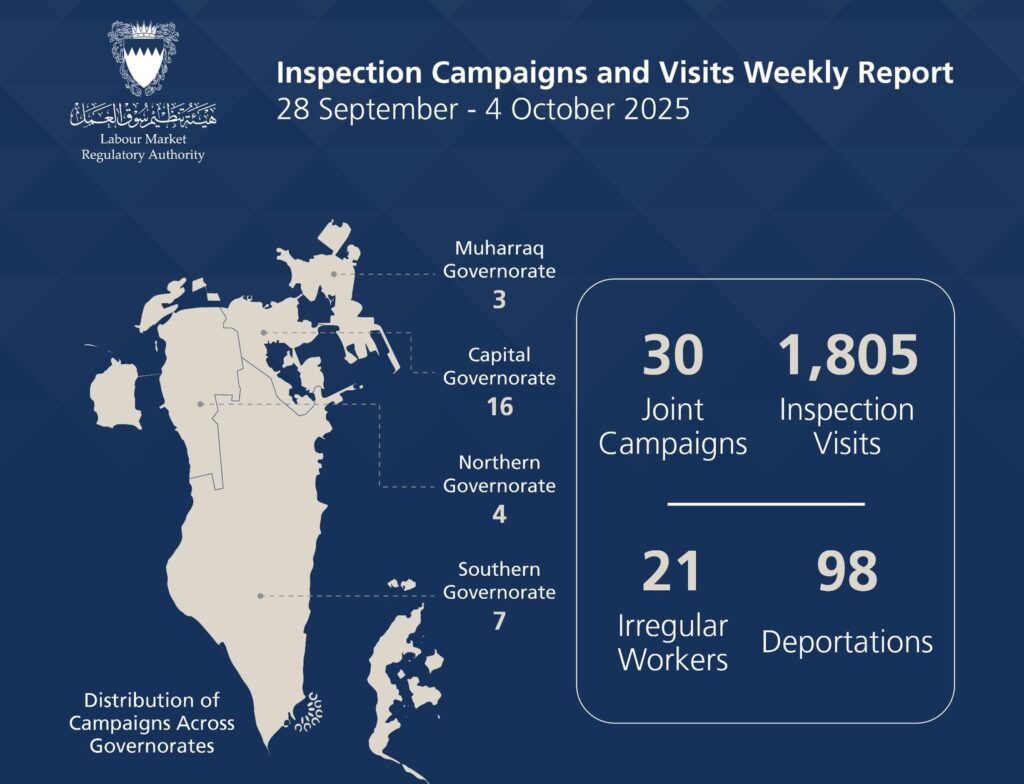 ബഹ്റൈൻ : സെപ്റ്റംബർ 28 നും ഒക്ടോബർ 4 നും ഇടയിൽ ലേബർ മാർക്കറ്റ് റെഗുലേറ്ററി അതോറിറ്റി 1,835 പരിശോധനകൾ നടത്തി ,താമസ രേഖയില്ലാതെ കഴിഞ്ഞ വിദേശിയരായ 21 നിയമലംഘകരെ അറസ്റ്റ് ചെയ്തു. മുൻ ദിവസങ്ങളിൽ പിടിക്കപ്പെട്ട 98 നിയമലംഘകരെ നാടുകടത്തിയതായും ലേബർ മാർക്കറ്റ് റെഗുലേറ്ററി അതോറിറ്റി അറിയിച്ചു . പരിശോധനാ കാമ്പെയ്നുകളുടെയും സന്ദർശനങ്ങളുടെയും ഫലമായി നിരവധി നിയന്ത്രണ നിയമങ്ങളിലെ വ്യവസ്ഥകളുമായി ബന്ധപ്പെട്ട നിരവധി ലംഘനങ്ങൾ കണ്ടെത്തി, പ്രത്യേകിച്ച് ലേബർ മാർക്കറ്റ് റെഗുലേറ്ററി അതോറിറ്റി നിയമത്തിലെയും ബഹ്റൈൻ താമസ നിയമത്തിലെയും വ്യവസ്ഥ ലംഘനങ്ങൾ സംബന്ധിച്ച് നിയമ നടപടികൾ സ്വീകരിച്ചതായും എൽ എം ആർ എ അധികൃതർ വ്യക്തമാക്കി . രാജ്യത്തിൻറെ വിവിധ ഗവർണറേറ്റുകളിൽ 7 കാമ്പെയ്നുകൾ എന്നിവയുൾപ്പെടെ 30 സംയുക്ത പരിശോധനാ കാമ്പെയ്നുകൾക്ക് പുറമേ, എല്ലാ ഗവർണറേറ്റുകളിലുമായി വിവിധ വാണിജ്യ സ്ഥാപനങ്ങളിൽ 1,805 പരിശോധനാ സന്ദർശനങ്ങൾ നടത്തിയതായി അതോറിറ്റി വ്യക്തമാക്കി . നാഷണാലിറ്റി, പാസ്പോർട്ട്സ് ആൻഡ് റെസിഡൻസ് അഫയേഴ്സ്, ഗവർണറേറ്റുകളിലെ സുരക്ഷാ ഡയറക്ടറേറ്റുകൾ, ജനറൽ ഡയറക്ടറേറ്റ് ഫോർ ദി ഇംപ്ലിമെന്റേഷൻ ഓഫ് ജഡ്ജ്മെന്റ്സ് ആൻഡ് ആൾട്ടർനേറ്റീവ് പെനാൽറ്റികൾ, ജനറൽ ഓർഗനൈസേഷൻ ഫോർ സോഷ്യൽ ഇൻഷുറൻസ്, ബഹ്റൈൻ ടൂറിസം ആൻഡ് എക്സിബിഷൻസ് അതോറിറ്റി എന്നിവ പ്രതിനിധീകരിക്കുന്ന ആഭ്യന്തര മന്ത്രാലയം തുടങ്ങി മന്ത്രാലയങ്ങൾ സംയുക്തമായി ആണ് പരിശോധന സംഘടിപ്പിച്ചത് . ബഹ്റൈൻ രാജ്യത്തിന്റെ എല്ലാ ഗവർണറേറ്റുകളിലും പരിശോധനാ കാമ്പെയ്നുകൾ ശക്തമാക്കുന്നതിനും തൊഴിൽ വിപണിയെയും അതിന്റെ സ്ഥിരതയെയും മത്സരശേഷിയെയും പ്രതികൂലമായി ബാധിക്കുന്നതോ രാജ്യത്തിന്റെ സാമ്പത്തിക, സാമൂഹിക സുരക്ഷയെ ദോഷകരമായി ബാധിക്കുന്നതോ ആയ നിയമ ലംഘനങ്ങൾ കണ്ടെത്തുന്നതിനായി സർക്കാർ ഏജൻസികളുമായി സംയുക്ത ഏകോപനം തുടരുമെന്ന് അതോറിറ്റി വ്യക്തമാക്കി . നിയമ ലംഘനം ശ്രദ്ധയിൽ പെട്ടാൽ അധികൃതരെ വിവരം അറിയിക്കണമെന്നും എൽ എം ആർ എ പൊതു ജനങൾക്ക് നൽകി . തൊഴിൽ വിപണിയിലെ ലംഘനങ്ങളും ക്രമരഹിതമായ തൊഴിലുമായി ബന്ധപ്പെട്ട ഏതൊരു പരാതിയും അതോറിറ്റിയുടെ ഔദ്യോഗിക വെബ്സൈറ്റായ www.lmra.gov.bh-ലോ നാഷണൽ സജഷൻസ് ആൻഡ് കംപ്ലയിന്റ്സ് സിസ്റ്റം വഴിയോ 17506055 എന്ന നമ്പറിൽ അതോറിറ്റിയുടെ കോൾ സെന്ററിൽ വിളിച്ചോ അറിയിക്കണമെന്നും എൽ എം ആർ എ അറിയിച്ചു .