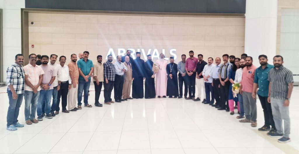 മനാമ : ബഹ്‌റൈൻ സെന്റ് മേരീസ് ഇന്ത്യന്‍ ഓര്‍ത്തഡോക്സ് കത്തീഡ്രലില്‍ 67-മത് പെരുന്നാള്‍ ശുശ്രൂഷകള്‍ക്ക് മുഖ്യകാര്‍മികത്വം വഹിക്കുവാന്‍ എത്തിയ മലങ്കര ഓര്‍ത്തഡോക്സ് സഭയുടെ മദ്രാസ് ഭദ്രാസനാധിപന്‍ അഭിവന്ദ്യ ഗീര്‍വര്‍ഗ്ഗീസ് മാര്‍ പീലക്സിനോസ് മെത്രാപ്പോലീത്തായെ കത്തീഡ്രല്‍ വികാരി ഫാദര്‍ ജേക്കബ് തോമസ് കാരയ്ക്കല്‍, സഹ വികാരി ഫാദര്‍ തോമസ്കുട്ടി പി. എൻ. , എം. ജീ. ഒ. സി. എസ്. എം. കേന്ദ്ര ജനറൽ സെക്രട്ടറി റവ. ഫാദർ ഡോ. വിവേക് വർഗീസ് ട്രസ്‌റ്റി സജി ജോർജ്, സെക്രട്ടറി ബിനു മാത്യൂ ഈപ്പൻ, കമ്മറ്റി അംഗങ്ങള്‍ ഇടവക അംഗങ്ങള്‍ എന്നിവര്‍ ചേര്‍ന്ന് സ്വീകരിക്കുന്നു