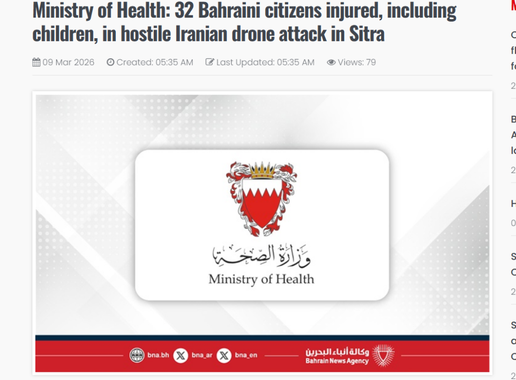 ബഹ്റൈൻ : സിത്ര പ്രദേശത്ത് ഇന്ന് പുലർച്ചെയുണ്ടായ ശത്രുതാപരമായ ഇറാനിയൻ ഡ്രോൺ ആക്രമണത്തിൽ ഇതുവരെ 32 സാധാരണക്കാർക്ക് പരിക്കേറ്റതായി ആരോഗ്യ മന്ത്രാലയം സ്ഥിരീകരിച്ചു, ഇതിൽ 4 പേരുടെ നില ഗുരുതരമാണ് – അവരിൽ ശസ്ത്രക്രിയ ആവശ്യമുള്ള കുട്ടികളും ഉൾപ്പെടുന്നു. പരിക്കേറ്റവരെല്ലാം ബഹ്റൈൻ പൗരന്മാരാണ്. തലയ്ക്കും കണ്ണിനും സാരമായ പരിക്കേറ്റ 17 വയസ്സുള്ള ഒരു പെൺകുട്ടിയും, കൈകാലുകൾക്ക് ഗുരുതരമായ പരിക്കേറ്റ ഏഴ്, എട്ട് വയസ്സുള്ള രണ്ട് കുട്ടികളും ഇതിൽ ഉൾപ്പെടുന്നു. പരിക്കേറ്റവരിൽ ഏറ്റവും ഇളയയാൾ രണ്ട് മാസം പ്രായമുള്ള കുഞ്ഞാണ്.പരിക്കേറ്റ എല്ലാ കക്ഷികളും സൂക്ഷ്മ നിരീക്ഷണത്തിലാണെന്നും പ്രത്യേക മെഡിക്കൽ ടീമുകളിൽ നിന്ന് തുടർ പരിചരണം ലഭിക്കുന്നുണ്ടെന്നും ആരോഗ്യ മന്ത്രാലയം ഊന്നിപ്പറഞ്ഞു. കൂടാതെ, ബഹ്റൈൻ രാജ്യത്തിനെതിരായ ഈ അന്യായമായ ആക്രമണം ആരംഭിച്ചതിനുശേഷം വിവിധ സുപ്രധാന വകുപ്പുകളിലുടനീളമുള്ള സന്നദ്ധത ഉയർന്നതോടെ ആരോഗ്യ സംവിധാനം അതീവ ജാഗ്രതയിലാണ്.