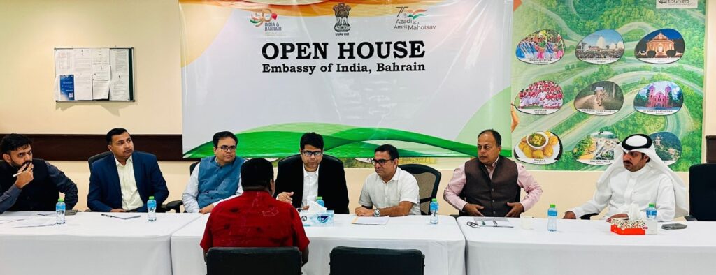 ബഹ്‌റൈൻ : അംബാസഡർ വിനോദ് കുര്യൻ ജേക്കബിന്റെ അധ്യക്ഷതയിൽ ഇന്ത്യൻ എംബസി ഓപ്പൺ ഹൗസ് സംഘടിപ്പിച്ചു. എംബസിയുടെ ക്ഷേമ, കോൺസുലാർ ടീമുകളും അഭിഭാഷക പാനലും ഓപ്പൺ ഹൗസിൽ പങ്കെടുത്തു. ഇംഗ്ലീഷ്, ഹിന്ദി, തമിഴ്, മലയാളം ഭാഷകളിൽ നടന്ന ഓപ്പൺ ഹൗസിൽ 40-ലധികം ഇന്ത്യൻ പൗരന്മാർ പങ്കെടുത്തു.സമീപകാല സാഹചര്യത്തിൽ ഇന്ത്യൻ സമൂഹത്തിന്റെ പെരുമാറ്റത്തെ അംബാസഡർ അഭിനന്ദിച്ചു. കൂടാതെ ബഹ്‌റൈൻ രാജ്യത്തിന്റെ അധികാരികൾ പുറപ്പെടുവിച്ച ആവശ്യമായ ഉപദേശങ്ങൾ പാലിക്കണമെന്നും അദ്ദേഹം അഭ്യർത്ഥിച്ചു. ഈ അപ്രതീക്ഷിത സാഹചര്യത്തിൽ ഇന്ത്യൻ സമൂഹത്തെ സഹായിക്കുന്നതിൽ ബഹ്‌റൈൻ സർക്കാർ അധികാരികൾ നൽകിയ തുടർച്ചയായ പിന്തുണയ്ക്കും സഹകരണത്തിനും അംബാസഡർ നന്ദി അറിയിച്ചു. 2025 ജൂൺ 21-ന് നടന്ന 11-ാമത് അന്താരാഷ്ട്ര യോഗ ദിനാചരണത്തിൽ സജീവമായി പങ്കെടുത്തതിന് ഇന്ത്യൻ സമൂഹ അംഗങ്ങൾക്ക് അംബാസഡർ നന്ദി പറഞ്ഞു. അടുത്തിടെ ഇന്ത്യ സന്ദർശിക്കുകയും രണ്ടാമത്തെ ഏഷ്യൻ യോഗാസന സ്‌പോർട്‌സ് ചാമ്പ്യൻഷിപ്പിൽ പങ്കെടുക്കുകയും ചെയ്ത ബഹ്‌റൈൻ യോഗാസന ടീമിന്റെ ഒരു പ്രതിനിധി സംഘവും പങ്കെടുത്തു. ഈദ് അൽ അദ്ഹയുടെ അവസരത്തിൽ, 20 ഇന്ത്യൻ പൗരന്മാരെ റോയൽ മാപ്പ് പ്രകാരം വിട്ടയച്ചു. ഇതോടെ, 2023 ഡിസംബർ മുതൽ ആകെ 250 ഇന്ത്യൻ പൗരന്മാരെ റോയൽ മാപ്പ് പ്രകാരം വിട്ടയച്ചു. തടവുകാരെ നേരിട്ട് കാണുന്നതിനായി എംബസി ഉദ്യോഗസ്ഥർ ഈ മാസം വനിതാ ജയിലിലും ജൗ ജയിലിലും സന്ദർശനങ്ങൾ നടത്തി. വനിതാ ജയിലിലെ തടവുകാർക്ക് ഇന്ത്യൻ കമ്മ്യൂണിറ്റി വെൽഫെയർ ഫണ്ട് വഴി സപ്പോർട്ട് കിറ്റുകൾ നൽകി.അംഗത്വ പാക്കേജ് വാഗ്ദാനം ചെയ്യുന്ന ടൂർ, ട്രാവൽ കമ്പനികൾ നടത്തിയ നിരവധി തട്ടിപ്പുകൾ ഇന്ത്യൻ പൗരന്മാർ എംബസിയിൽ റിപ്പോർട്ട് ചെയ്തിട്ടുണ്ട്. അത്തരം പാക്കേജുകൾ സബ്‌സ്‌ക്രൈബുചെയ്യുന്നതിനും പണമടയ്ക്കുന്നതിനും മുമ്പ് കമ്പനികളുടെ യോഗ്യതാപത്രങ്ങൾ ശ്രദ്ധാപൂർവ്വം പരിശോധിക്കാൻ എല്ലാ ഇന്ത്യൻ പൗരന്മാരെയും എംബസി നിർദേശം നൽകി . 2025 ഓഗസ്റ്റ് 01 മുതൽ ആരംഭിക്കുന്ന പാസ്‌പോർട്ട്, വിസ, കോൺസുലാർ സേവനങ്ങൾ നൽകുന്നതിന് ഒരു പുതിയ ഔട്ട്‌സോഴ്‌സ് സേവന ദാതാവിനെ ക്രമീകരിച്ചതായും . 2025 ജൂലൈ 1 മുതൽ 2025 ജൂലൈ 31 വരെ എംബസിയുടെ പരിസരത്ത് ഈ സേവനങ്ങൾ ലഭ്യമാകുമെന്നും എംബസി വ്യക്തമാക്കി .